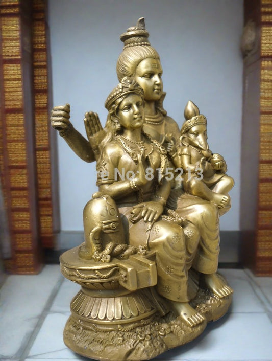 Pure Bronze Lord Shiva with Parwathy and Baby Ganesh