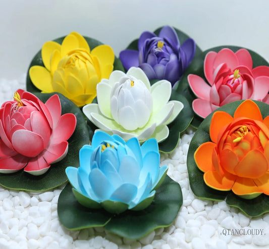 Artificial Waterproof Lotus With Leaves- 5 Pcs